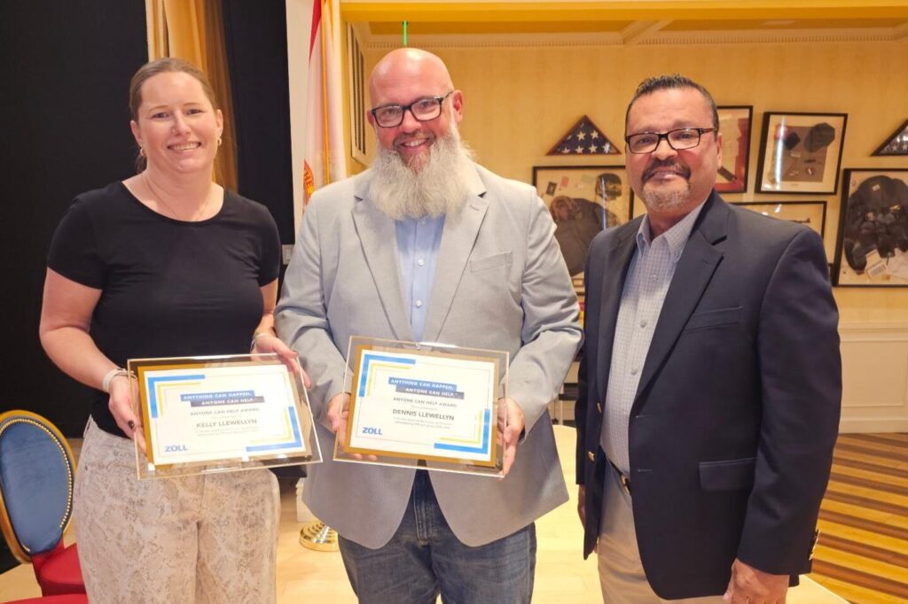 At the center of the event was the presentation of ZOLL’s Heroes for Life Award to citizen rescuers Dennie and Kelly Llewellyn, whose swift response helped save the life of fellow resident Rich Kleinholz after he suffered sudden cardiac arrest at the Everglades Softball Complex last fall.